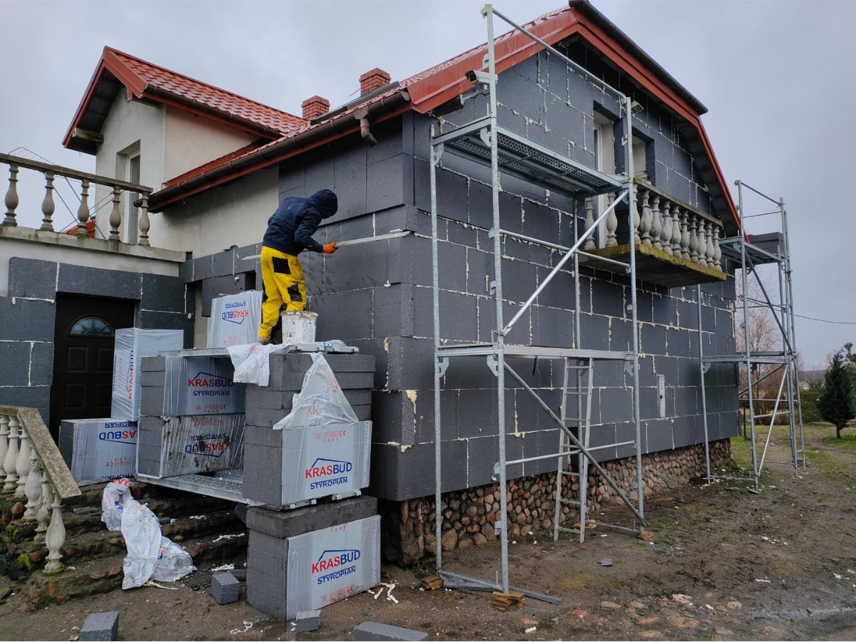 - Zocieplenie budynku styropianem grafit 15cm